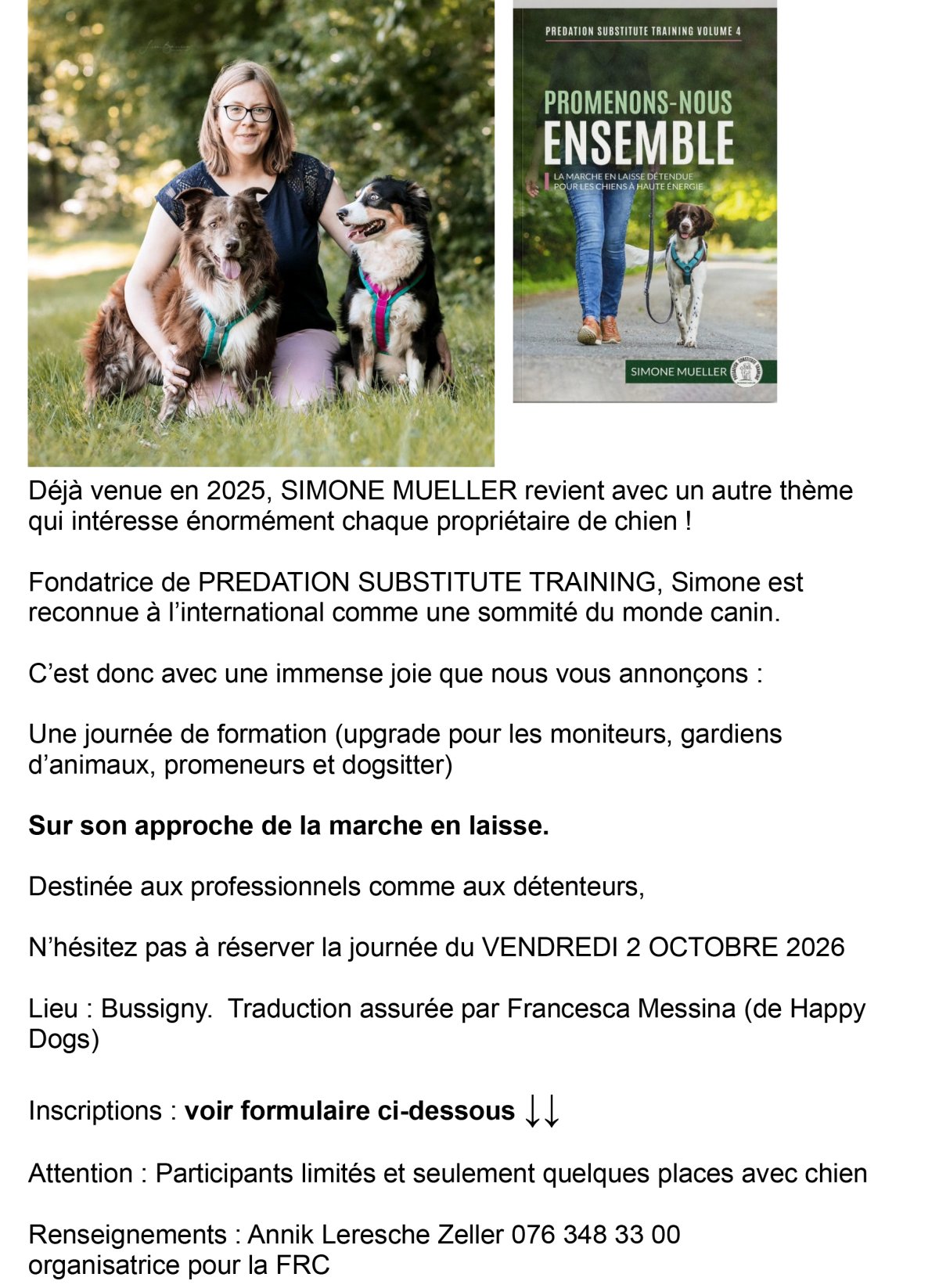 Le nombre de chiens est complet, vous pouvez encore vous inscrire sans chiens.